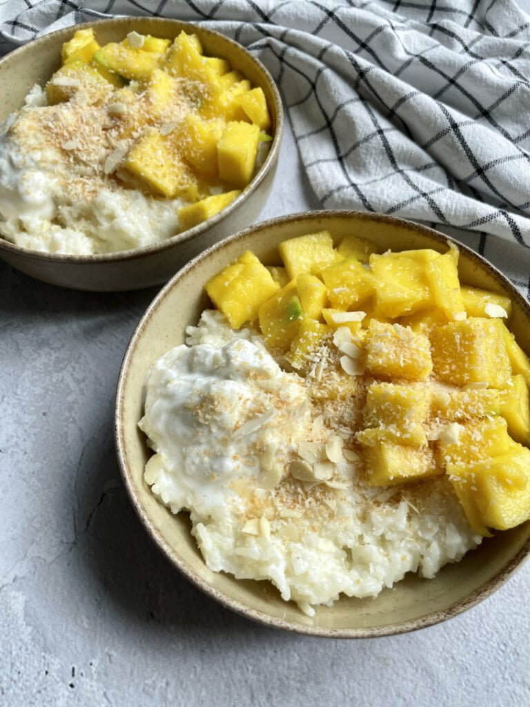 Kokosowy ryż z mango to pyszna propozycja na słodkie śniadanie lub deser. Przepis inspirowany znanym deserem mango sticky rice. Polecam wybrać